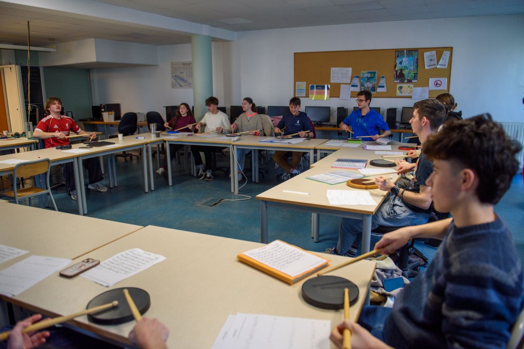 Le but : des progrès visibles rapidement, avec une méthode claire. On travaille une technique propre, la stabilité du tempo, puis la cohésion pupitre pour des départs/fins nets et des transitions fluides, toujours au service de l’ensemble.