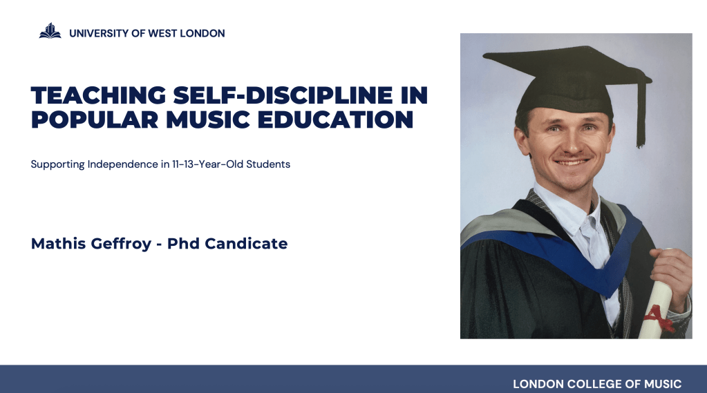 I’m investigating how self-discipline can be taught in 1-to-1 popular music lessons so 11–13-year-olds become more independent learners.